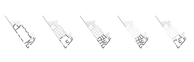 The main theme for the semester course is the complex and dense city. The building as a community is the aim of the research and its connection and relation to the city, the neighborhood, and the program.The façade of the building is also looked at, as the part that works as the ‘face’ of the building, and the special transitions toward the city.